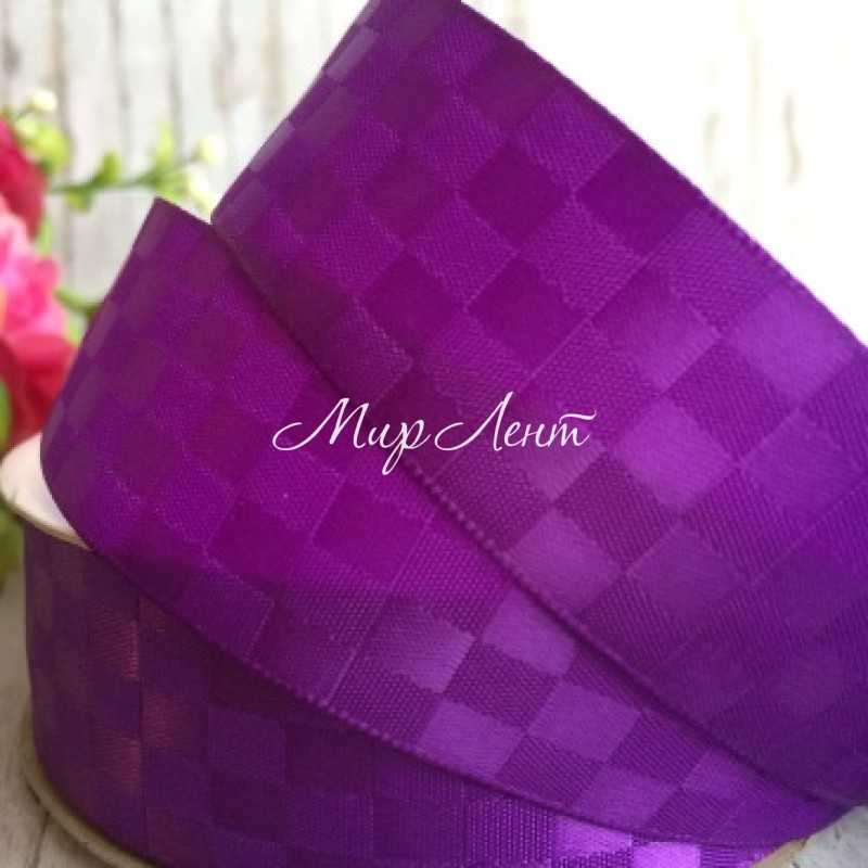 Атлас шахматка, 2,5 см, темно-фиолетовый, рулон 23 м