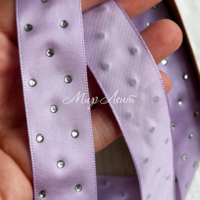Атлас со стразами, 2,5 см, лиловый, рулон 18,5 м