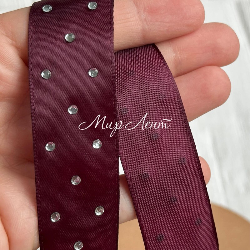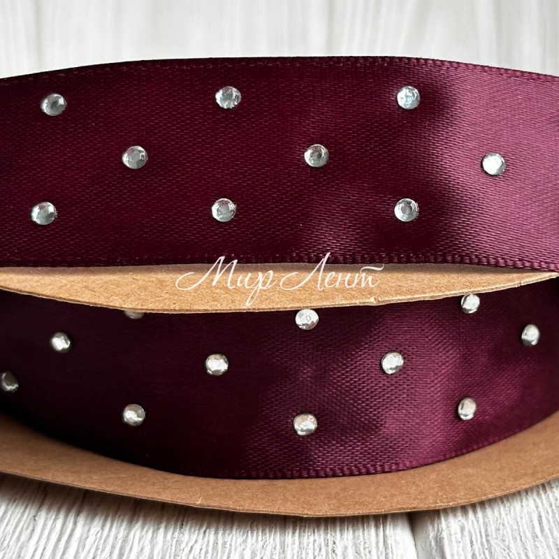 Атлас со стразами, 2,5 см, вишневый, рулон 18,5 м
