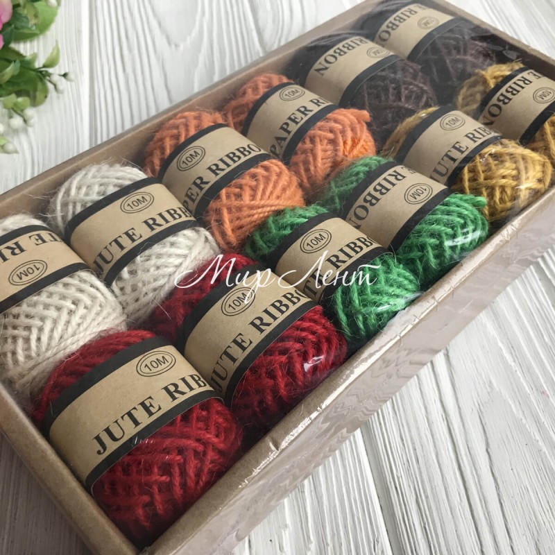 Бечевка (цветной микс), 2 мм, набор из 12 шт.