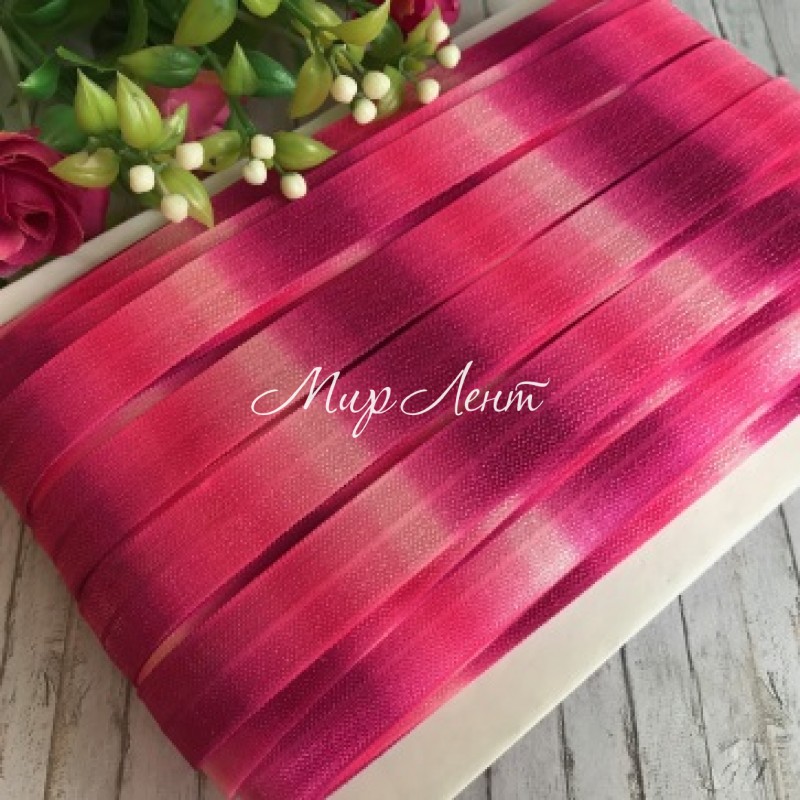 Бейка стрейчевая, 1,5 см, розово-малиновый омбре, рулон 28 м