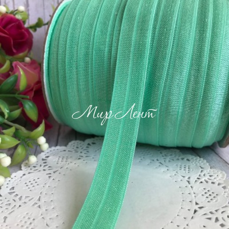 Бейка стрейчевая (shine), 1,5 см, мятный, рулон 50 м