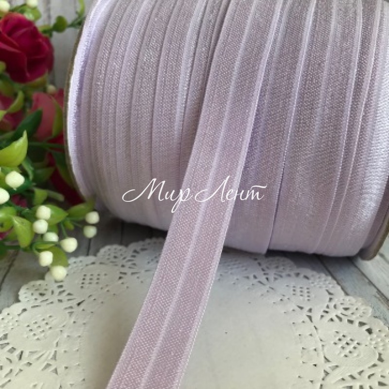 Бейка стрейчевая (shine), 1,5 см, светло-лиловый, рулон 50 м