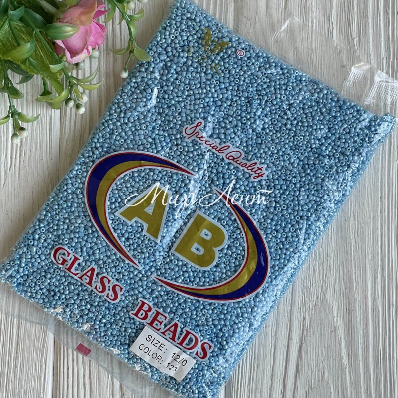 Бисер непрозрачный, размер 12/0, небесно-голубой перламутр (123), упаковка 400 г