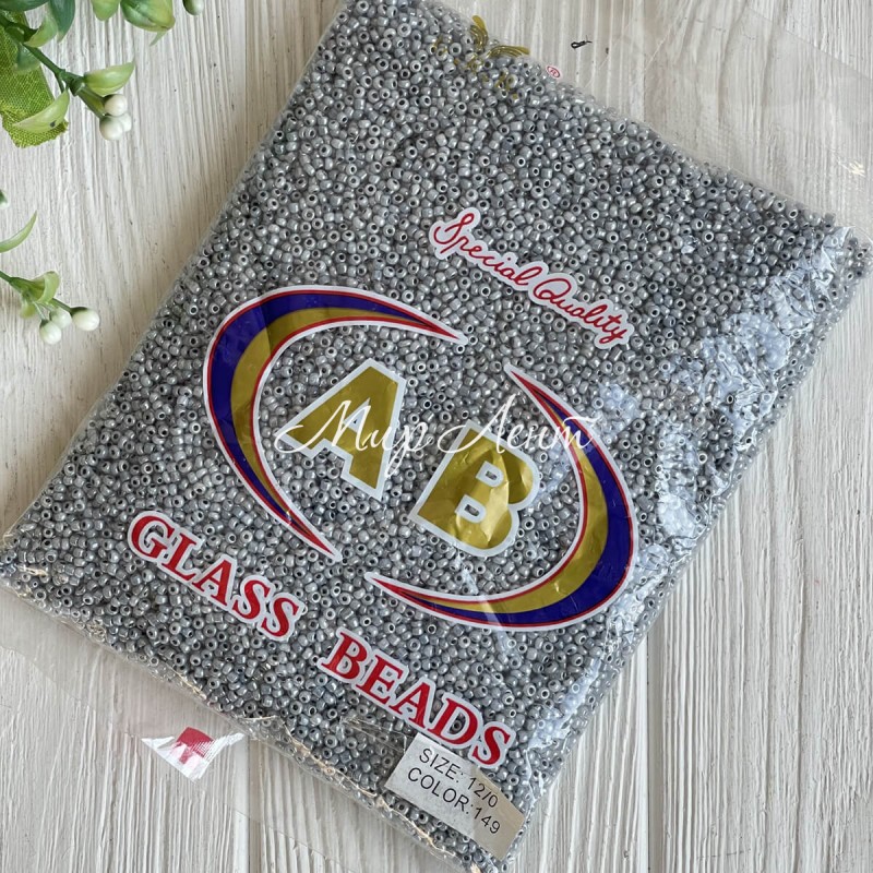 Бисер непрозрачный, размер 12/0, серый перламутр (149), упаковка 400 г