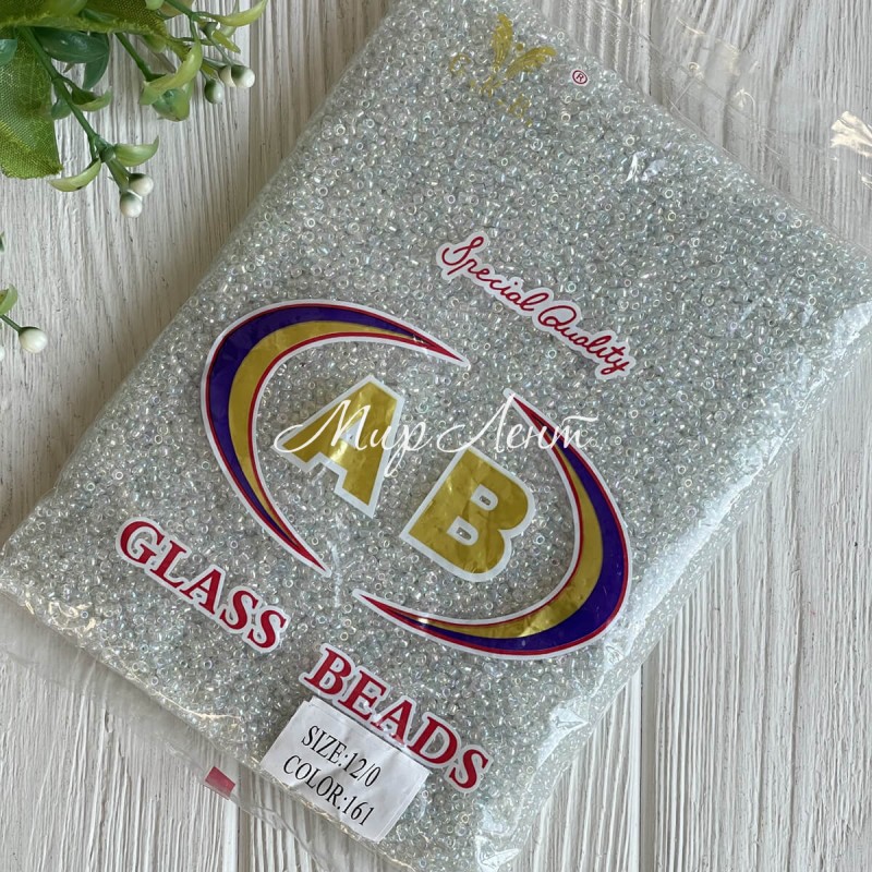 Бисер прозрачный, размер 12/0, белый перламутр (161), упаковка 400 г