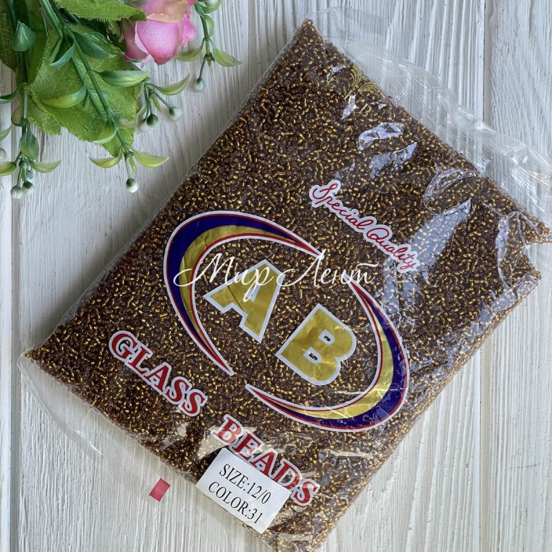 Бисер прозрачный, размер 12/0, кофейный (31), упаковка 400 г