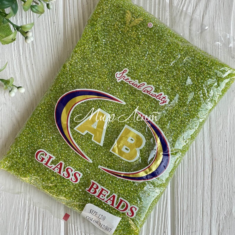 Бисер прозрачный, размер 12/0, светло-оливковый (112/807), упаковка 400 г