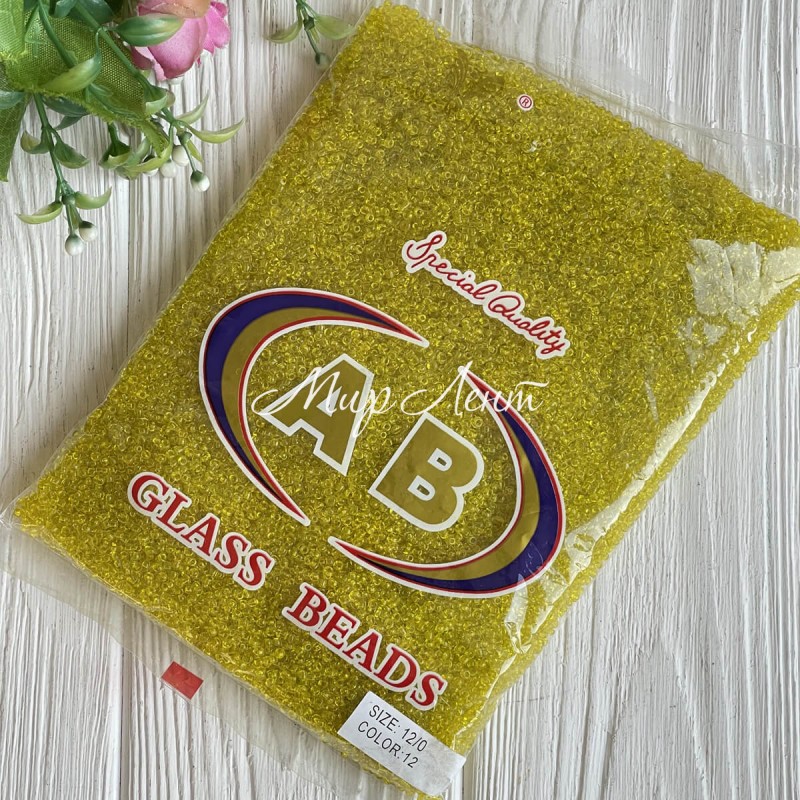 Бисер прозрачный, размер 12/0, желтый (12), упаковка 400 г