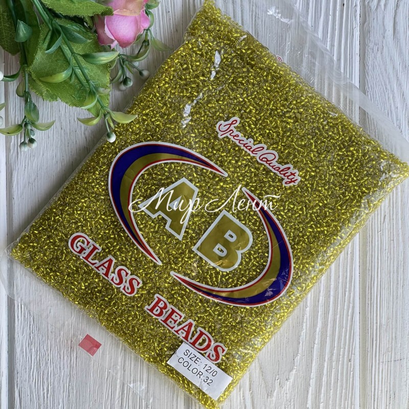 Бисер прозрачный, размер 12/0, желтый (32), упаковка 400 г