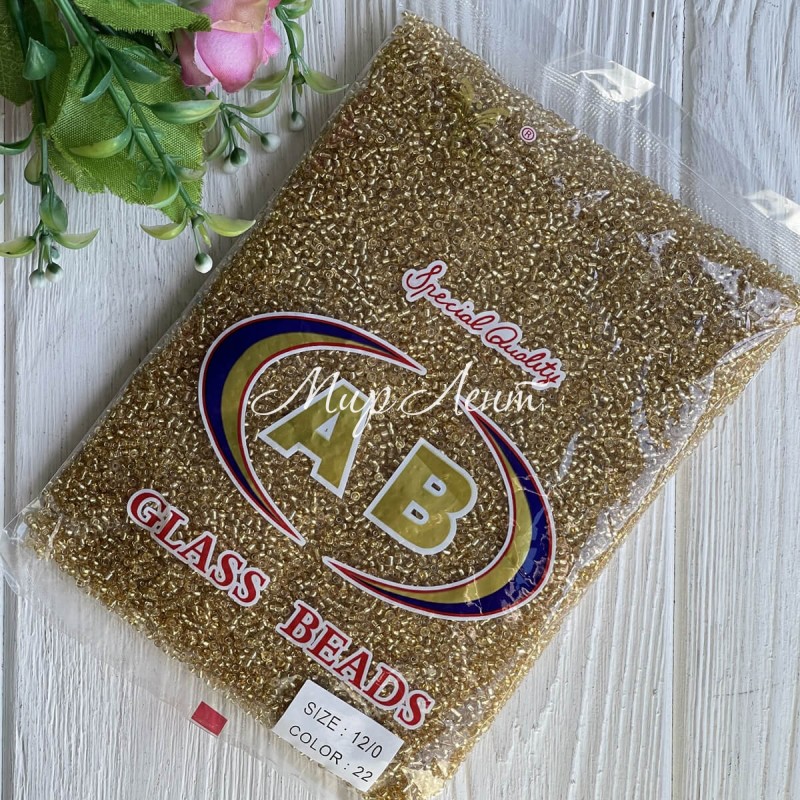 Бисер прозрачный, размер 12/0, золото (22), упаковка 400 г