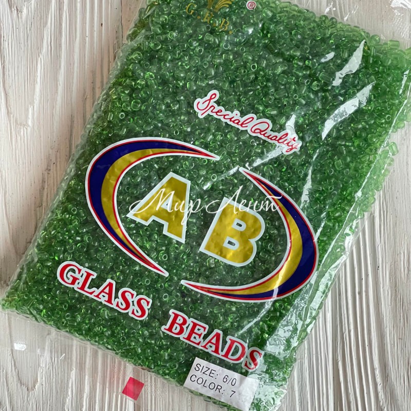 Бисер, размер 6/0, зеленый прозрачный (7), упаковка 400 г