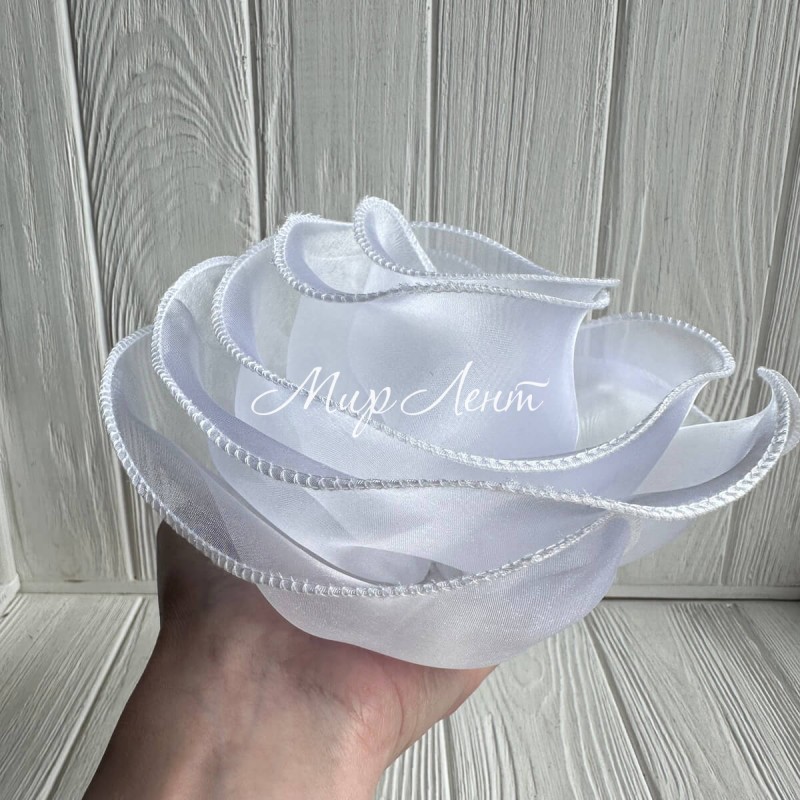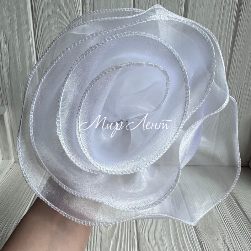 Брошка-цветок с органзы большая (леска), 22 см, белая, шт.