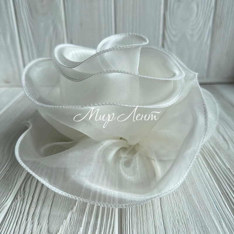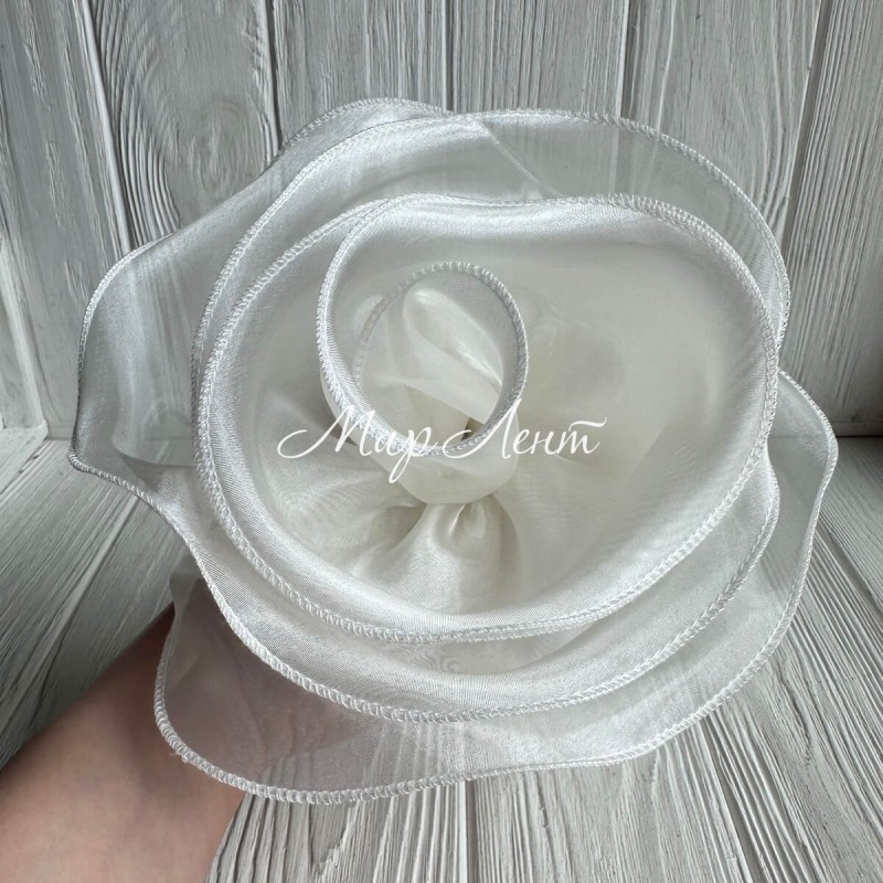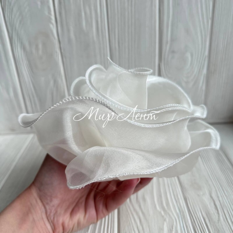 Брошка-цветок с органзы большая (леска), 22 см, молочная, шт.