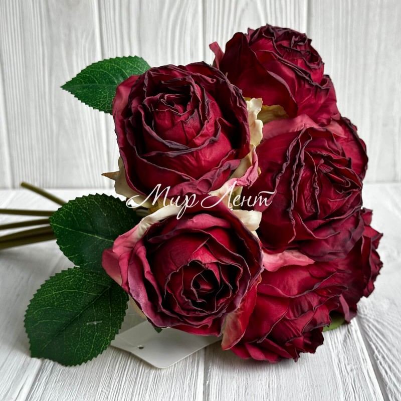 Букет бурбонской розы, 6х27 см, бордовый, букет з 7 шт.