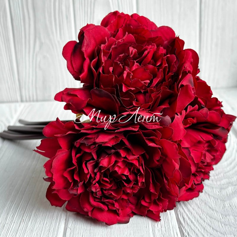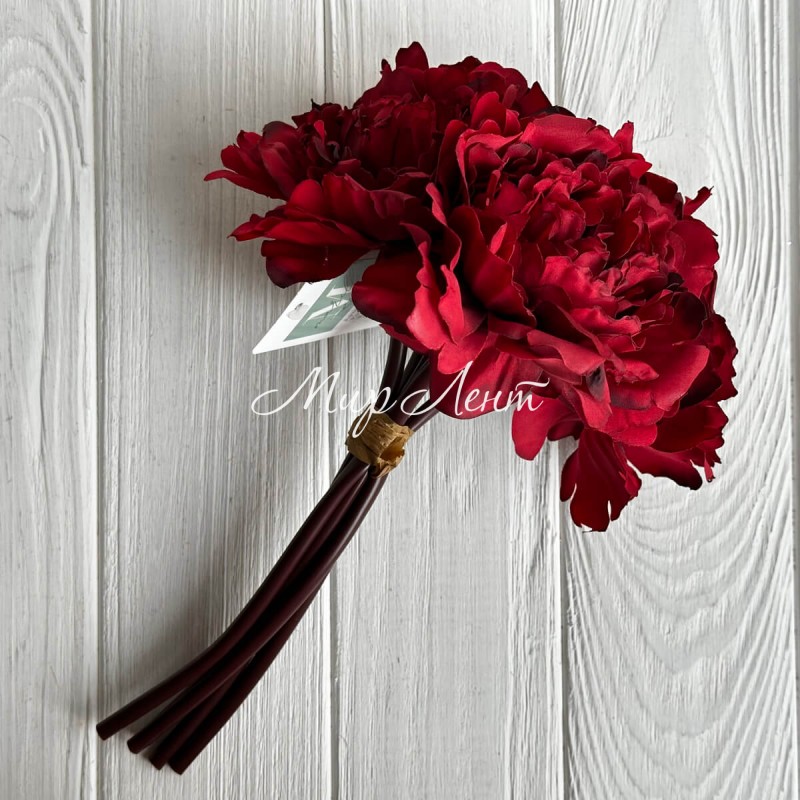 Букет древовидной пионии, 8х27 см, бордовый, букет 5 шт.