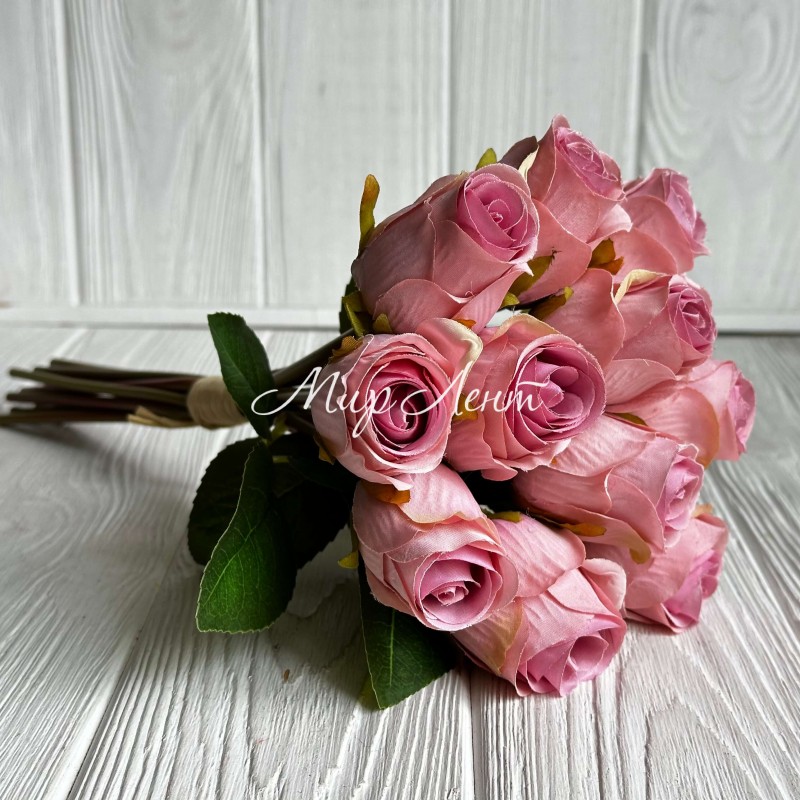 Букет роз, 28 см, розово-пудровый, букет из 11 шт.
