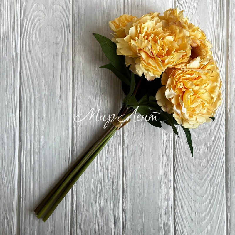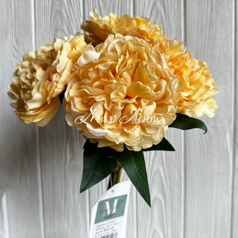 Букет травянистого пиона, 8,5х38 см, желтый, букет 5 шт.