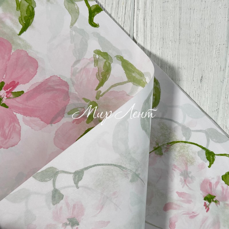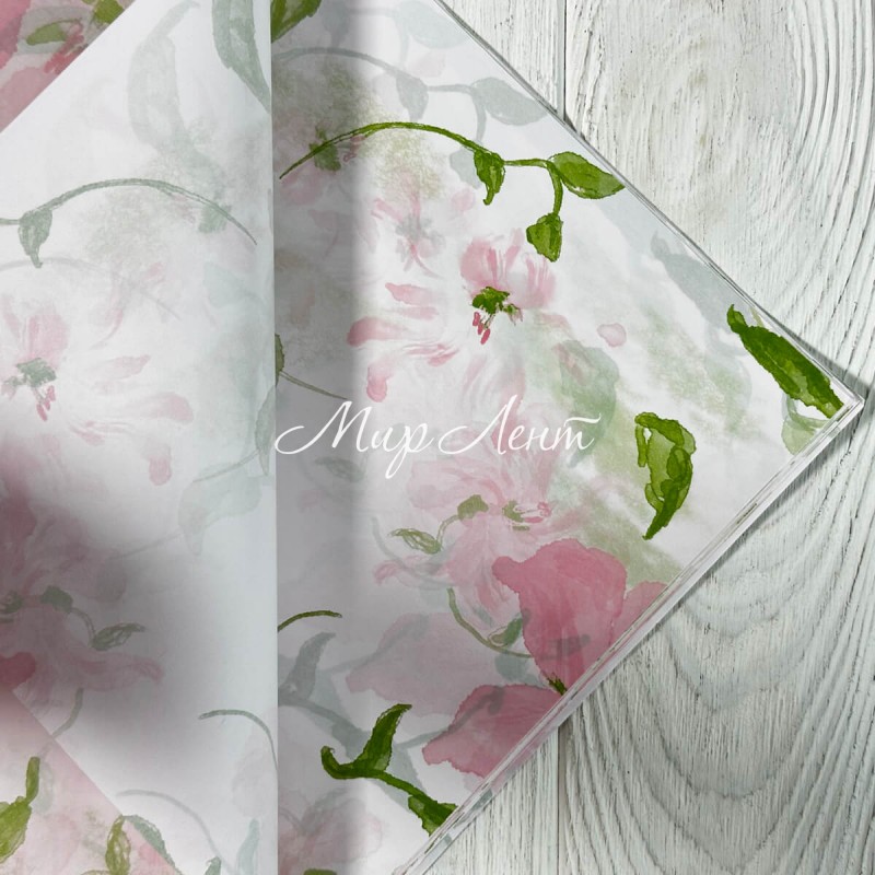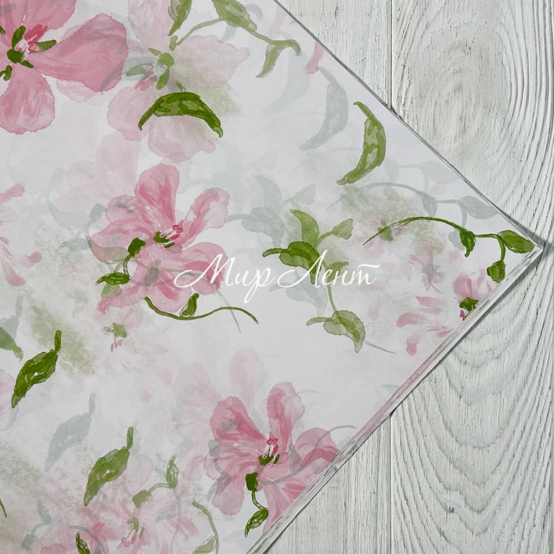 Бумага тишью с цветочным принтом (J00395), 50х68 см, светло-розовый, упаковка 20 шт.