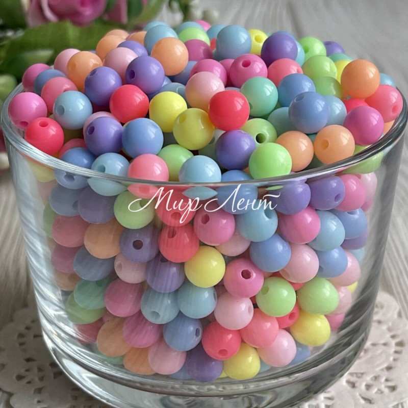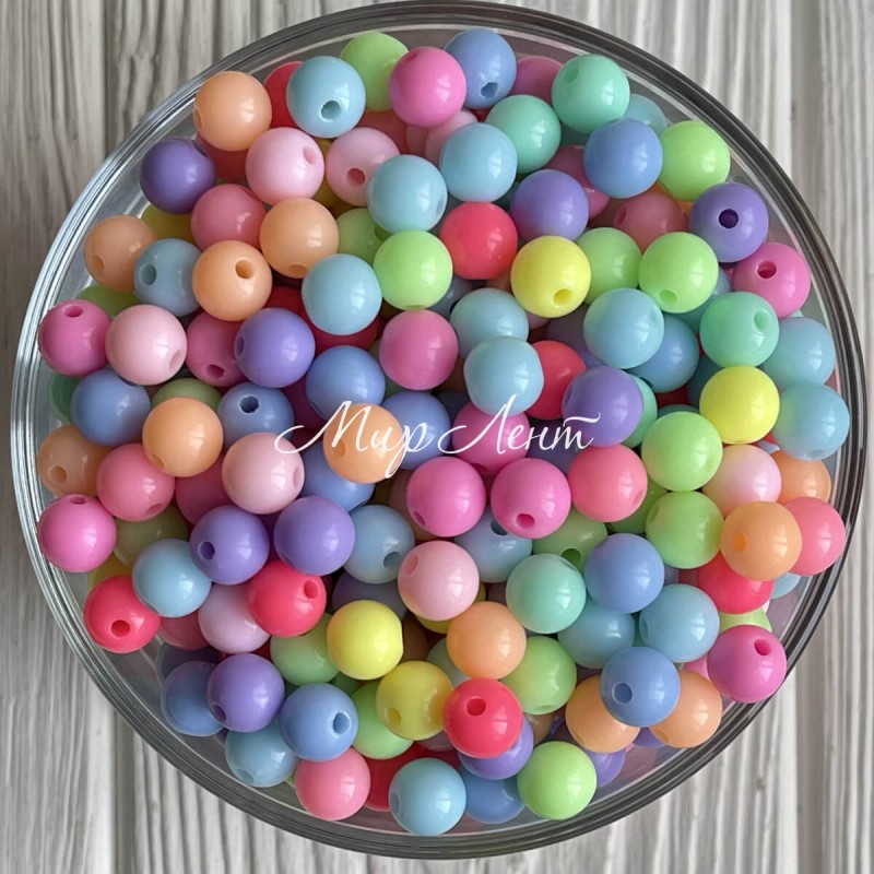 Бусина акриловая (матовый глянц), 12 мм, пастельный микс, упаковка 250 г
