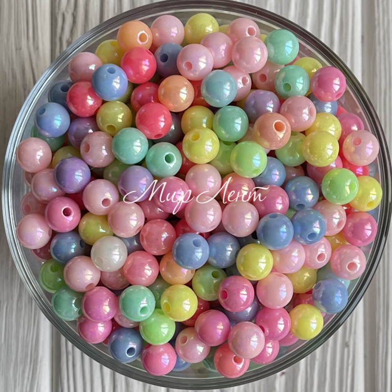 Бусина акриловая (перламутр) однотонная, 10 мм, пастельный микс, упаковка 250 г