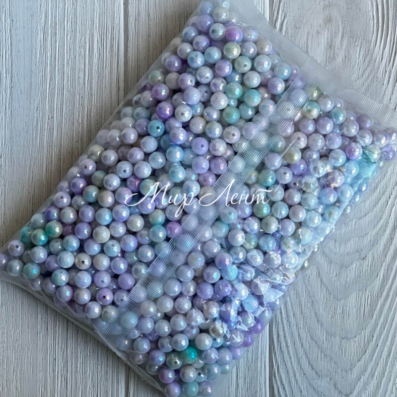 Бусина акриловая (перламутр) омбре, 8 мм, лилово-мятный пастельный микс, упаковка 500 г