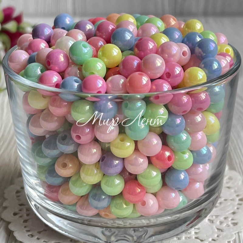 Бусина акриловая (перламутр) однотонная, 8 мм, пастельный микс, упаковка 250 г