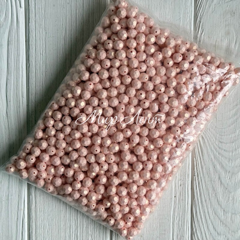 Бусина акриловая перламутровая граненый круг (С11811), 10 мм, светло-розовая, упаковка 500 г