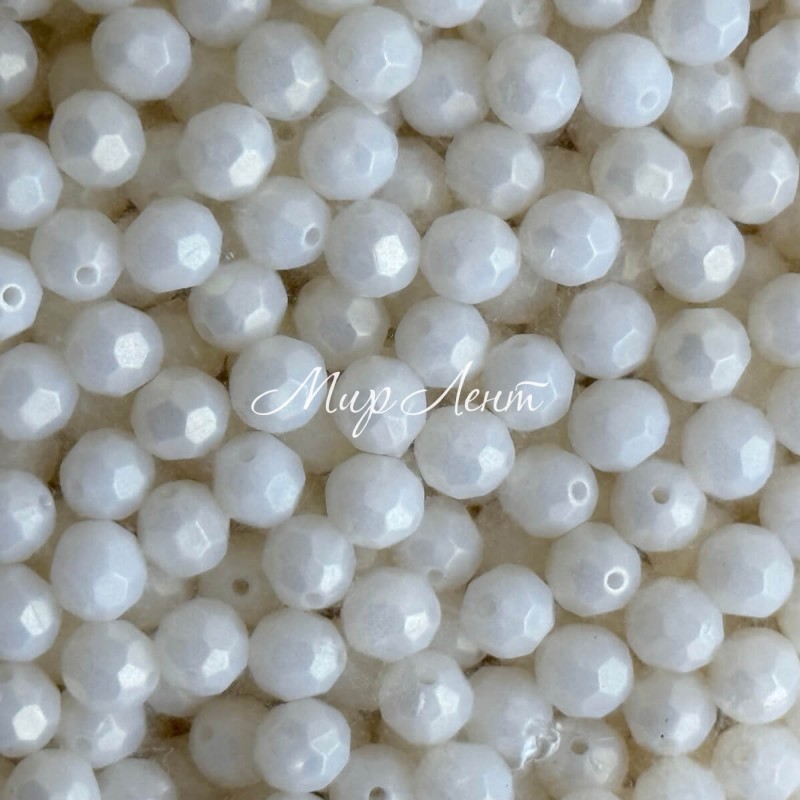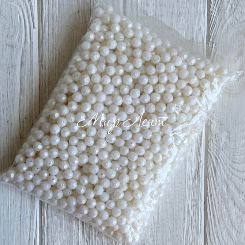 Бусина акриловая перламутровая граненый круг (С11811), 10 мм, белая, упаковка 500 г