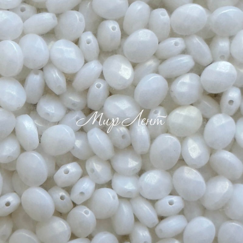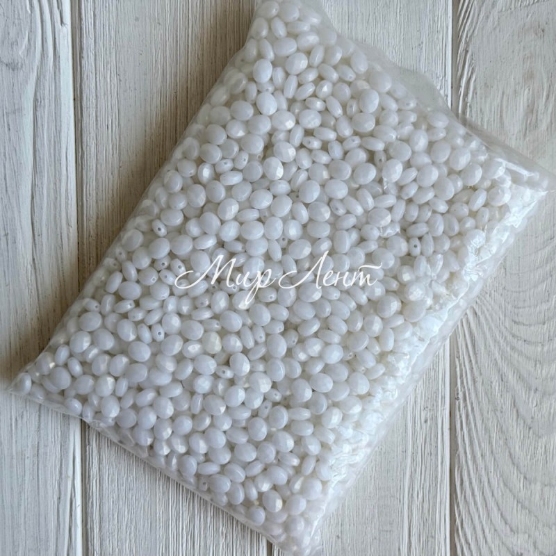 Бусина акриловая перламутровая граненый овал (С11831), 10х8,5 мм, белая, упаковка 500 г