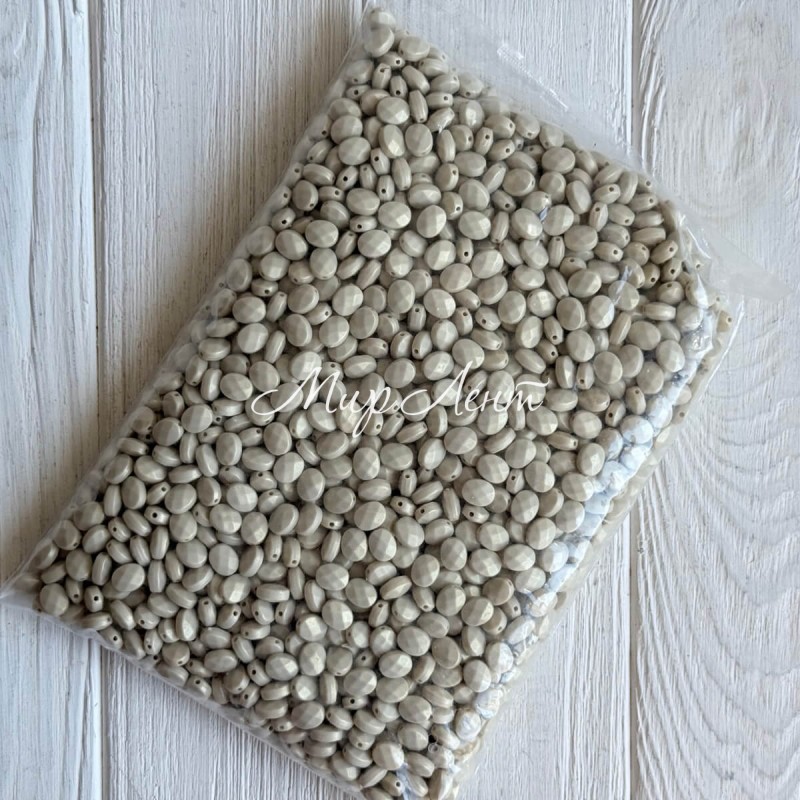 Бусина акриловая перламутровая граненый овал (С11831), 10х8,5 мм, светло-серая, упаковка 500 г