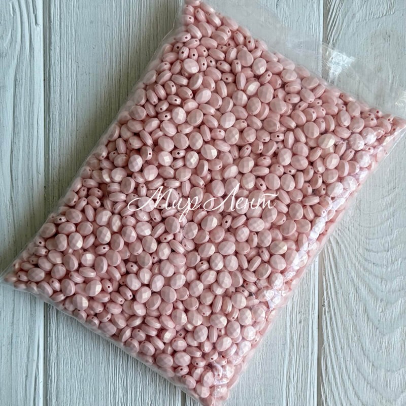 Бусина акриловая перламутровая граненый овал (С11831), 10х8,5 мм, светло-розовая, упаковка 500 г
