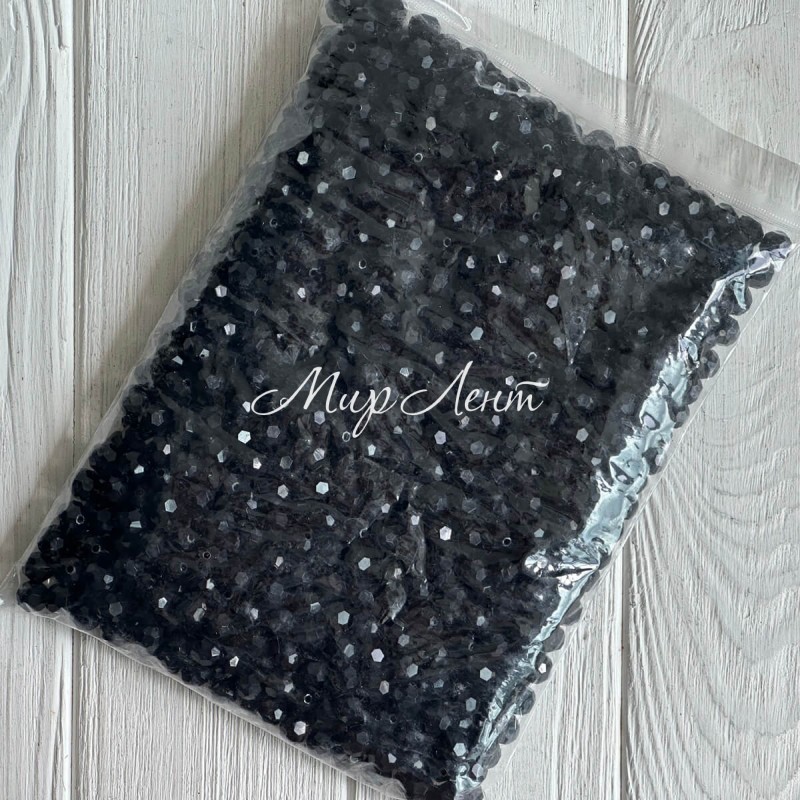 Бусина граненая круглая, 10 мм, черная, упаковка 500 г