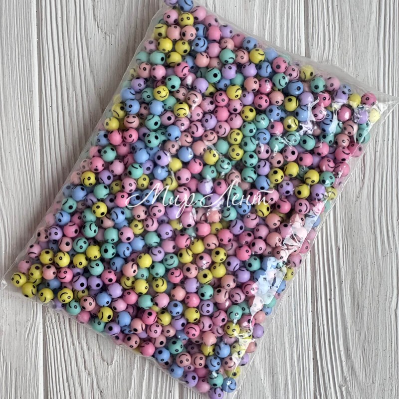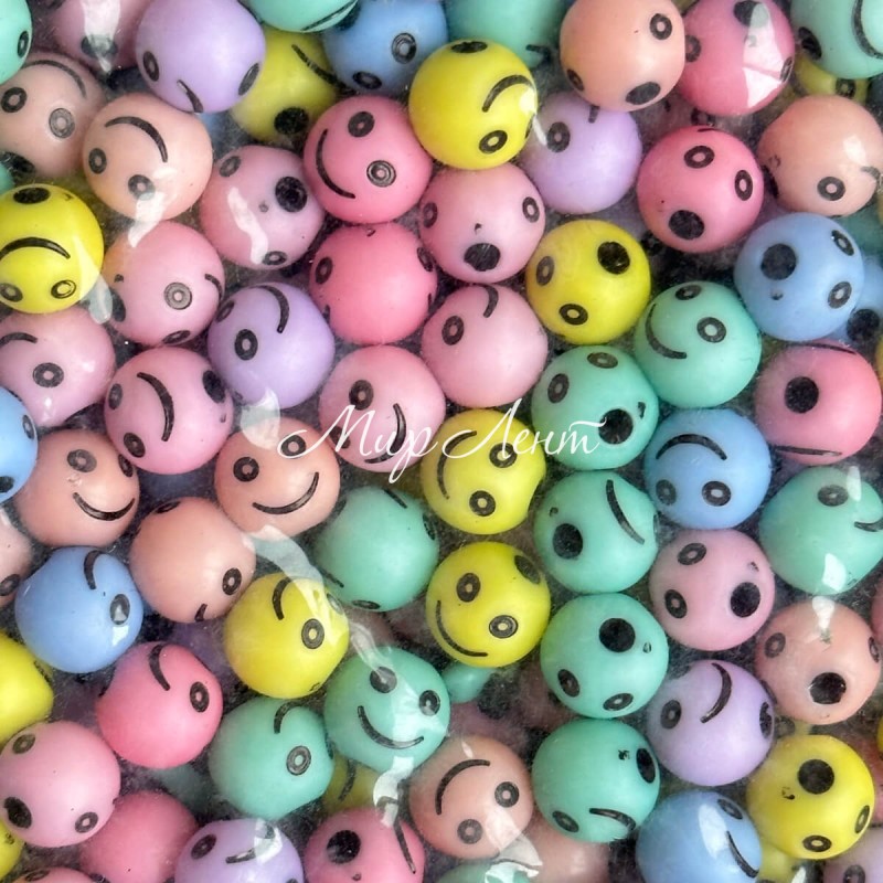Бусина круглая с улыбкой, 10 мм, пастельный микс, упаковка 500 г