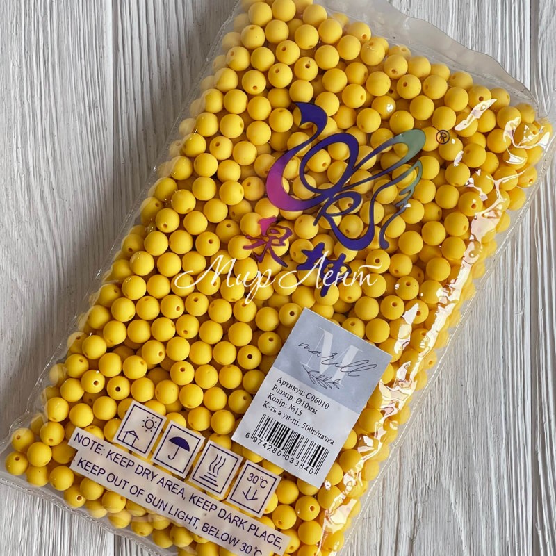 Бусина матовая "Зефирка", 10 мм, желтая, упаковка 500 грамм