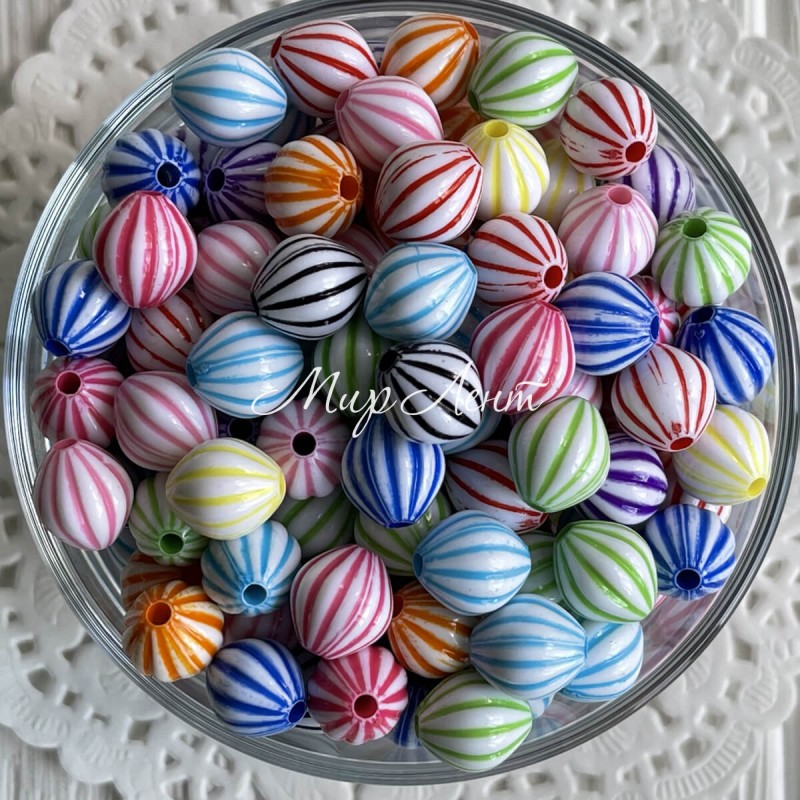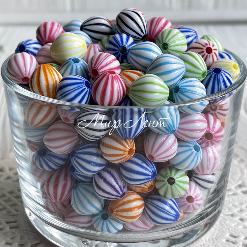 Бусина овальная в полоску, 12 мм, цветной микс, упаковка 500 г