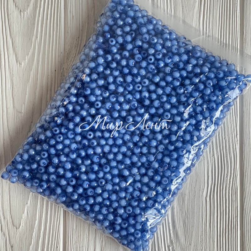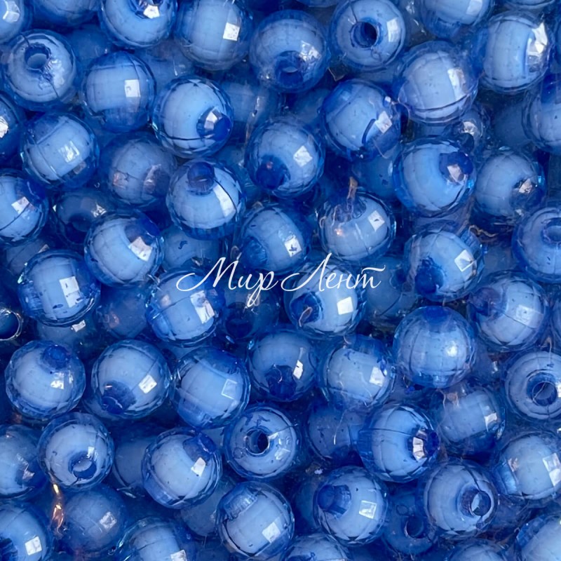 Бусина пластик с белой серединкой, 10 мм, голубая, упаковка 500 г