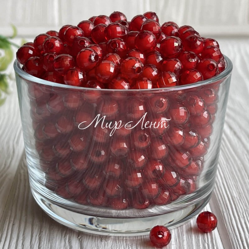 Бусина пластик с белой серединкой, 8 мм, красная, упаковка 500 г