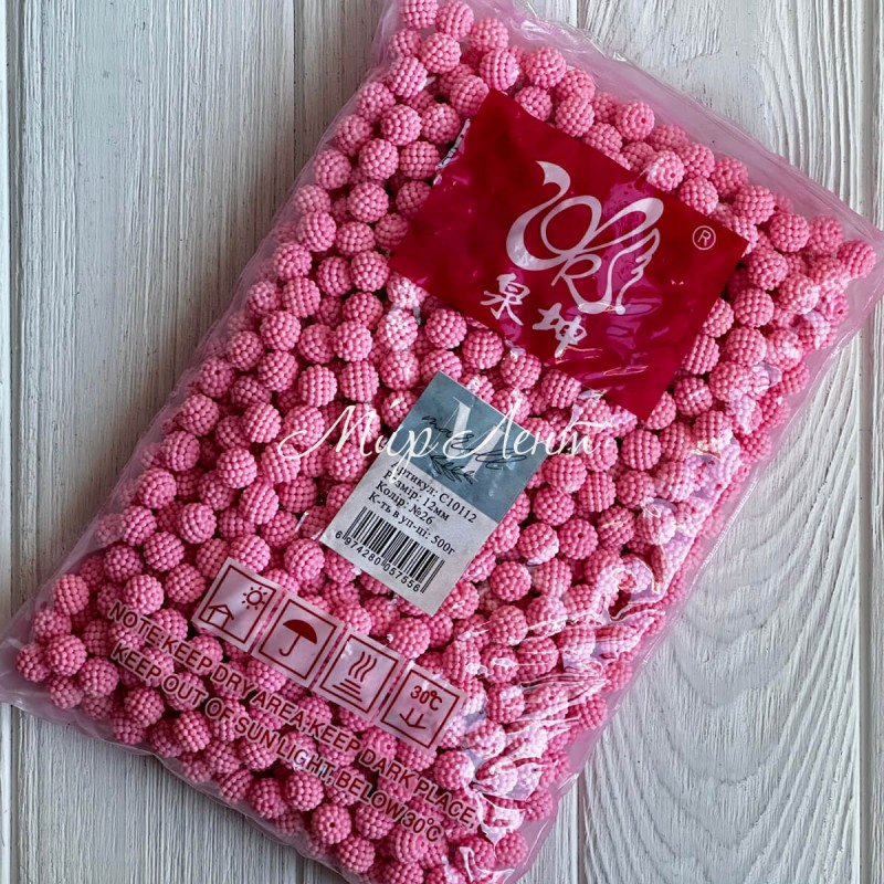 Бусина в пупырышку круглая матовая, 12 мм, розовая, упаковка 500 г