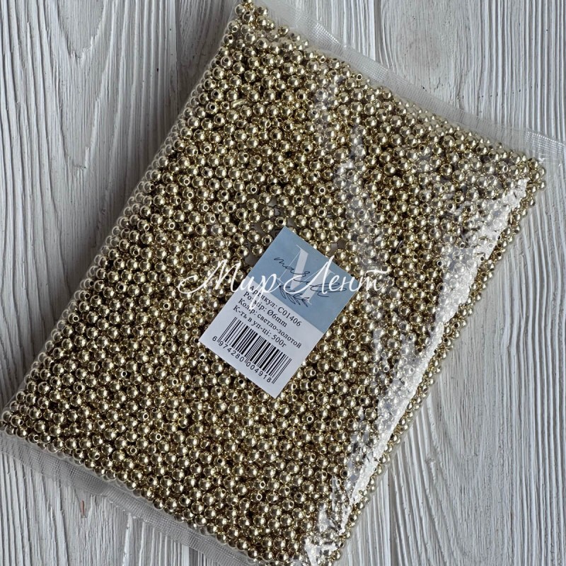 Бусины гальваника, 6 мм, светлое золото, упаковка 500 грамм