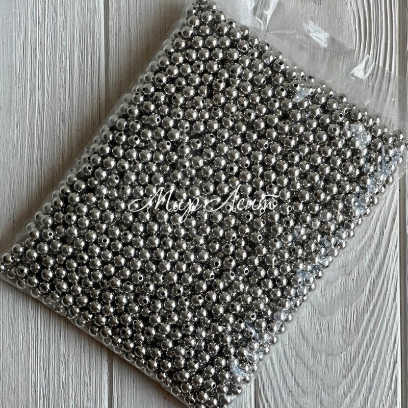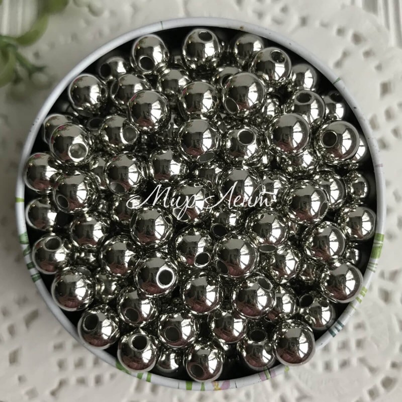 Бусины гальваника, 8 мм, серебро, упаковка 500 грамм