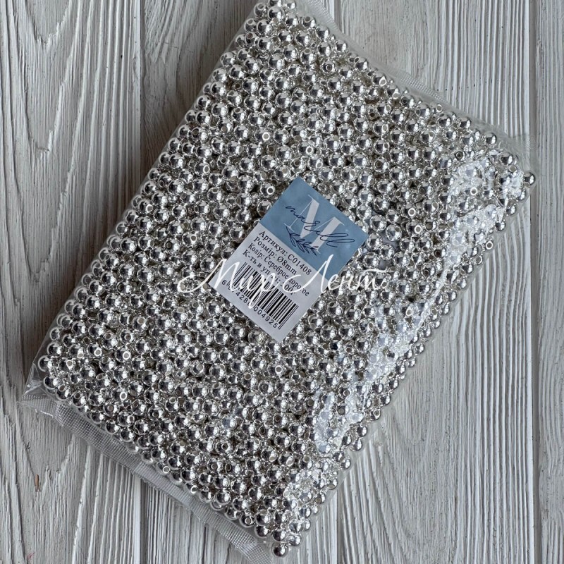 Бусины гальваника, 8 мм, светлое серебро, упаковка 500 грамм