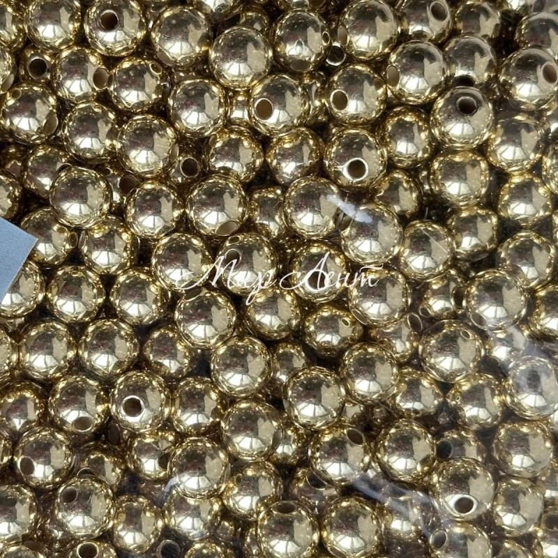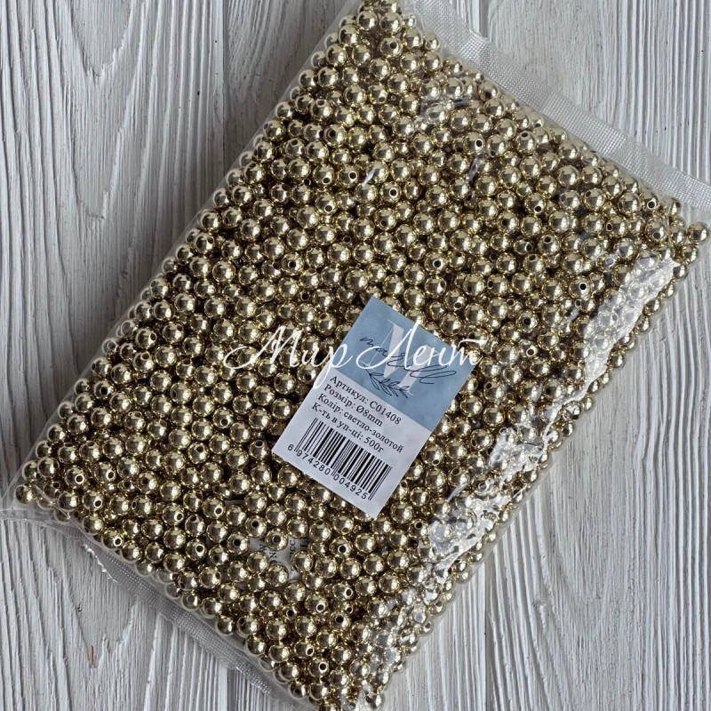 Бусины гальваника, 8 мм, светлое золото, упаковка 500 грамм