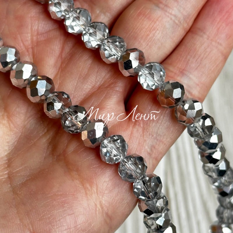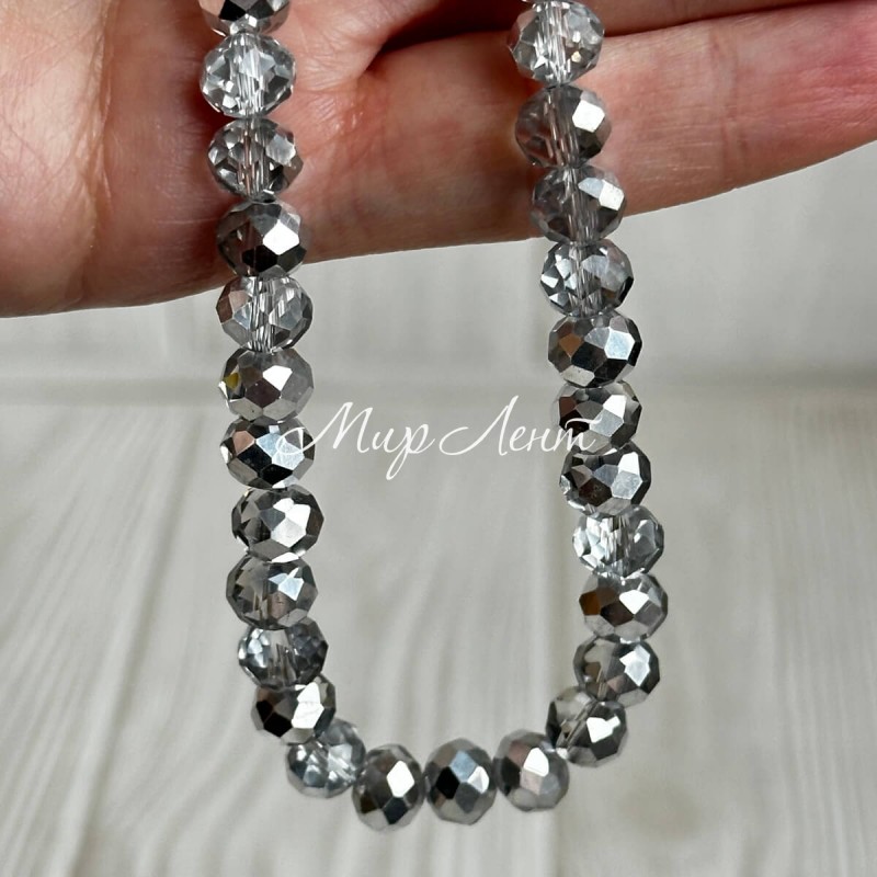 Бусины Рондель хрусталь, 8 мм, серебряные, нитка 65-68 шт.