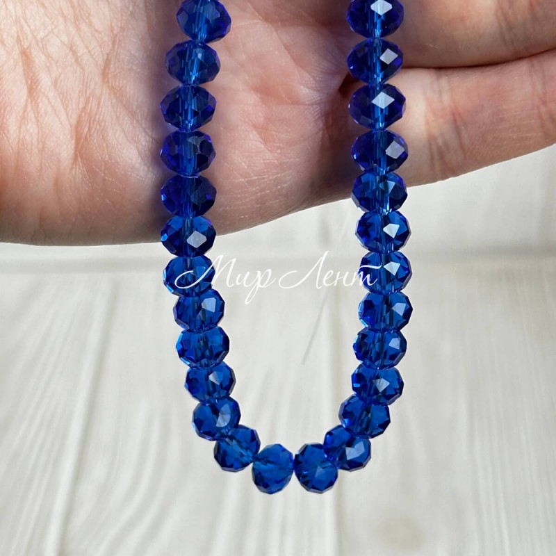 Бусины Рондель хрусталь, 8 мм, темно-синие, нитка 65-68 шт.