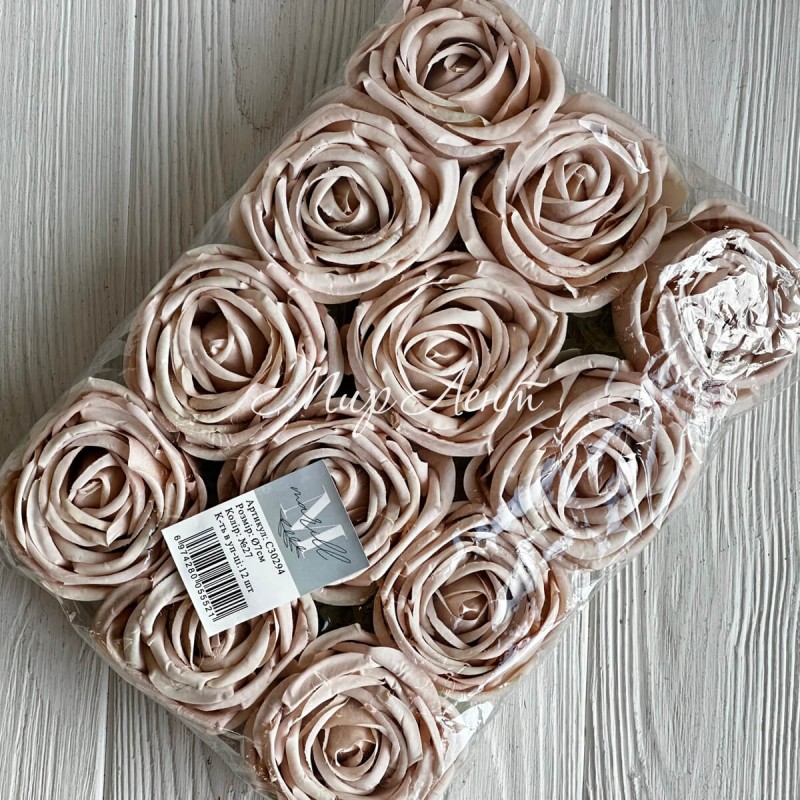 Бутон чайной розы, 7 см, кофейная, упаковка 12 шт.