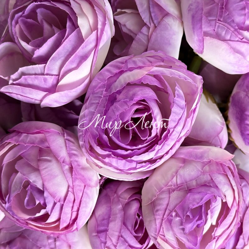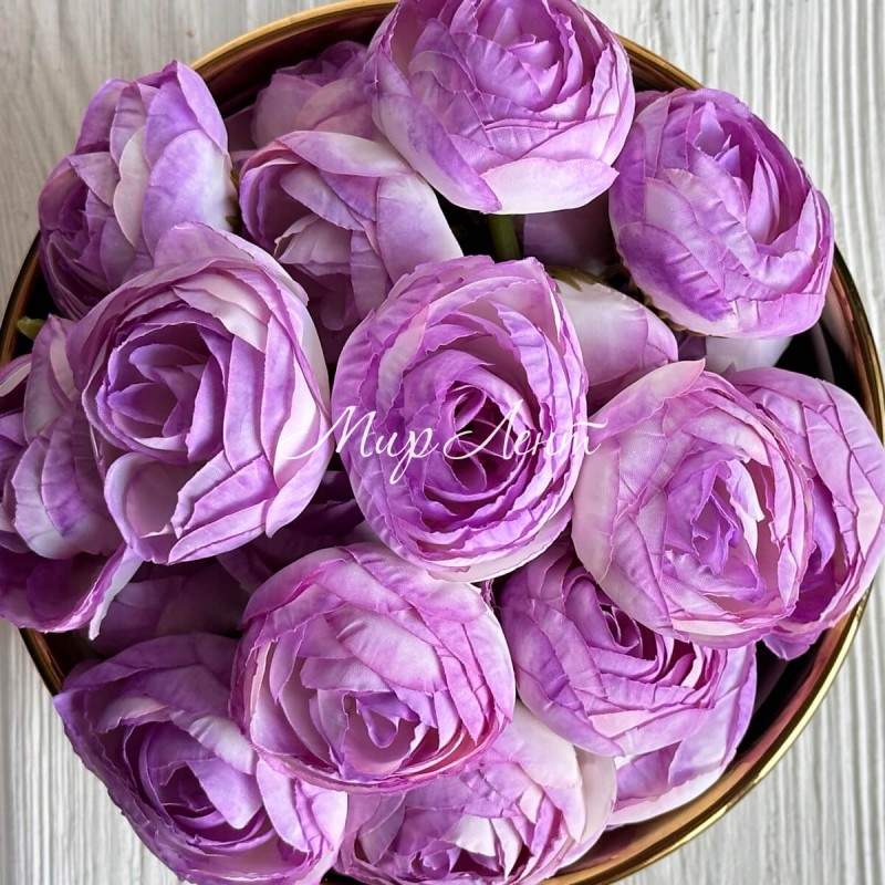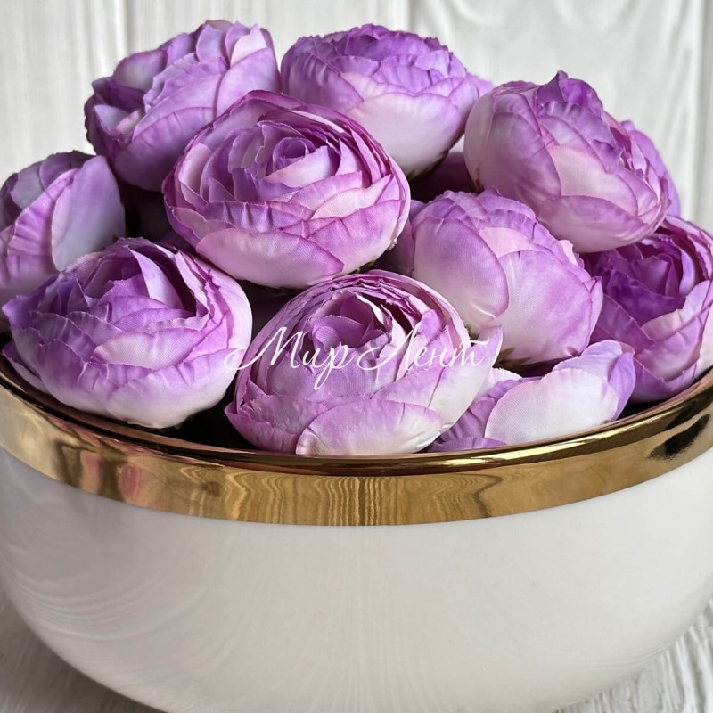 Бутон ранункулюса (пластиковая основа), 4 см, бело-сиреневый, упаковка 25 шт.