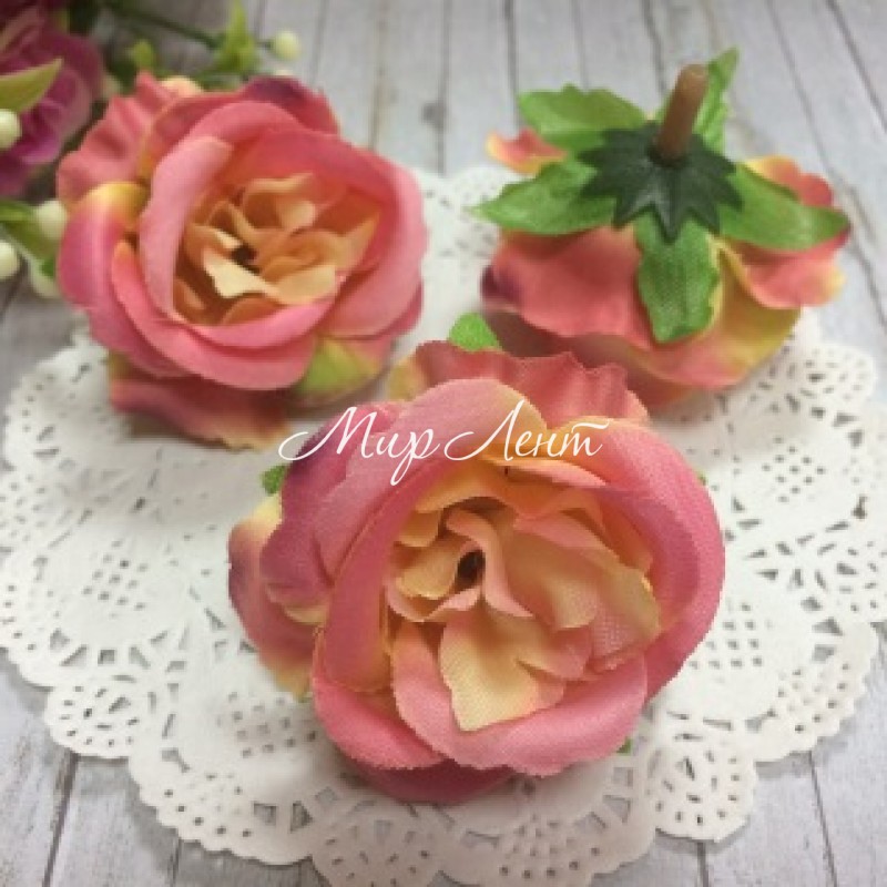 Бутон розы тканевый, 5 см, коралово-желтый, упаковка 20 шт.