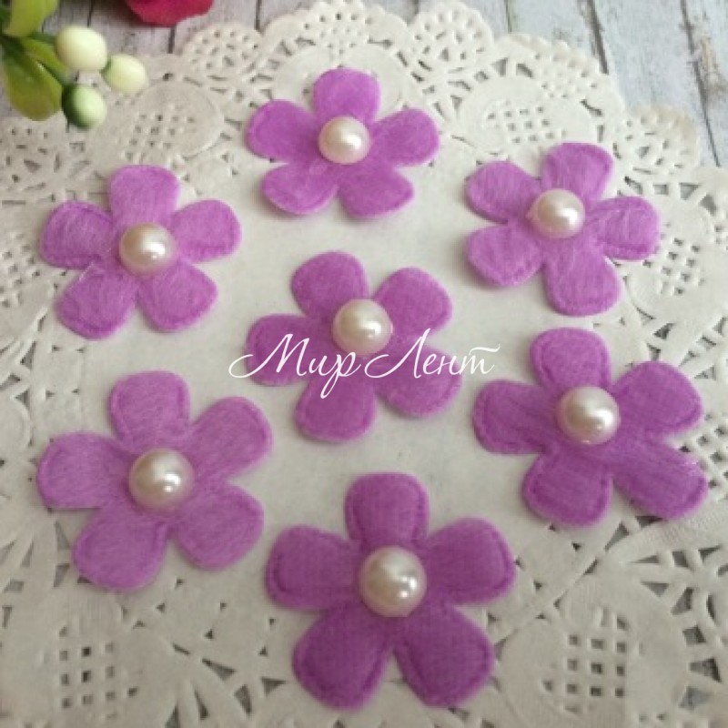 Цветочек из фетра с жемчугом, 2,5 см, фиолетовый, упаковка 1000 шт.