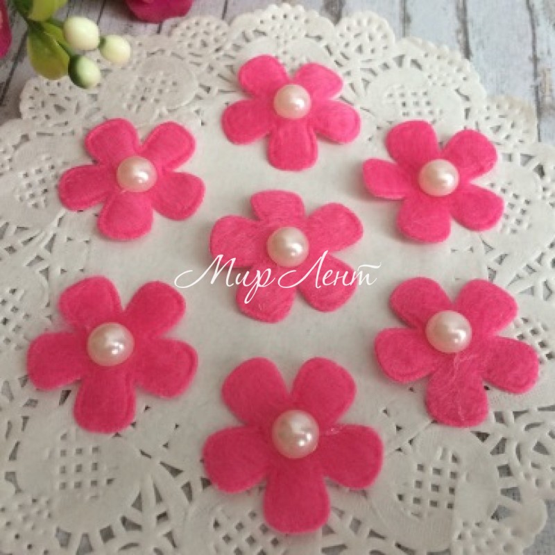 Цветочек из фетра с жемчугом, 2,5 см, малиновый, упаковка 1000 шт.